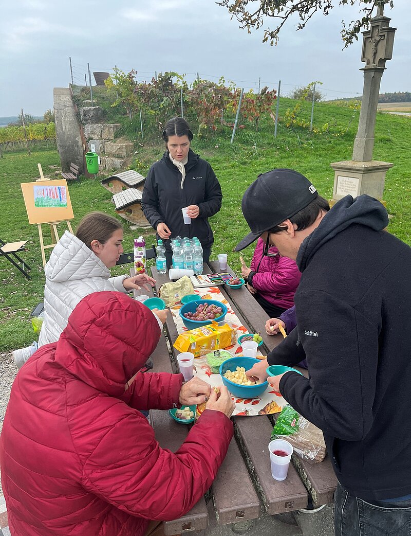 Wer so viel an den richtigen Proportionen und Perspektiven feilscht wird natürlich auch hungrig und so haben wir den Nachmittag stilecht mit einem Picknick aus Käse und Trauben ausklingen lassen. Das Kulturbüro dankt Philipp Rau für die Umsetzung dieses tollen Workshops und allen Teilnehmenden für ihre Motivation auch bei herbstlichen Temperaturen kreativ zu werden!